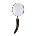 The decorative magnifying glass, measuring 25x10 cm, is an elegant accessory that combines functionality with aesthetics. Made of metal with handles crafted from natural materials and a glass lens, it is a perfect addition to an office, study, or living room. Ideal for decorative purposes, it adds a unique character to any space. Its minimalist design complements various interior styles, adding class and elegance.