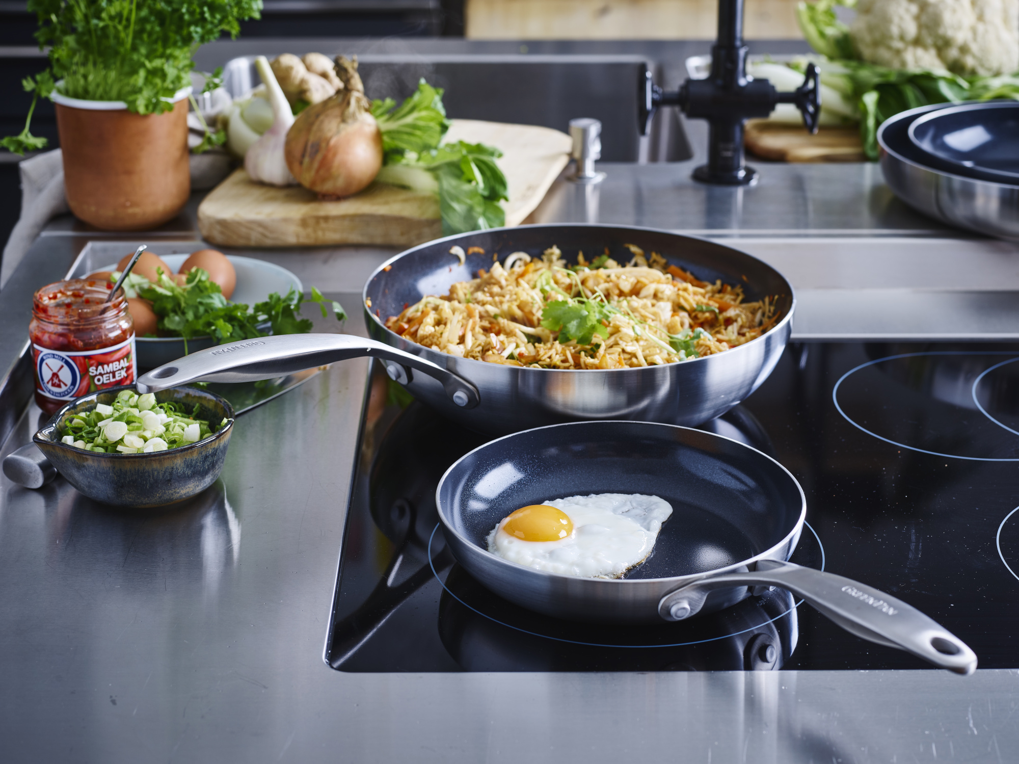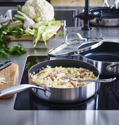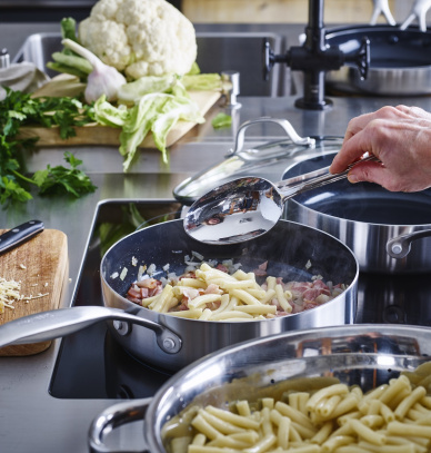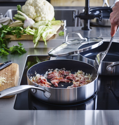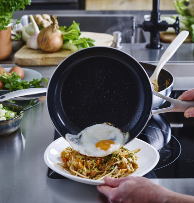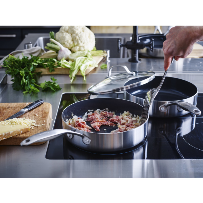 Patelnie Geneva od GreenPan spełniają oczekiwania najbardziej wymagających kucharzy. Solidna konstrukcja ze stali nierdzewnej gwarantuje trwałość, a nieprzywierająca powłoka zapewnia wygodę podczas smażenia oraz łatwość czyszczenia. Te naczynia, wykonane z najwyższej jakości materiałów i wyposażone w innowacyjne technologie GreenPan, oferują wyjątkowe rezultaty. Technologia Evershine sprawia, że stalowe patelnie zachowują nieskazitelny wygląd nawet po długim użytkowaniu, a najwyższej klasy naturalna, ceramiczna powłoka nieprzywierająca Thermolon zapewnia doskonałe efekty nieprzywierania podczas gotowania ulubionych potraw w Twojej kuchni.