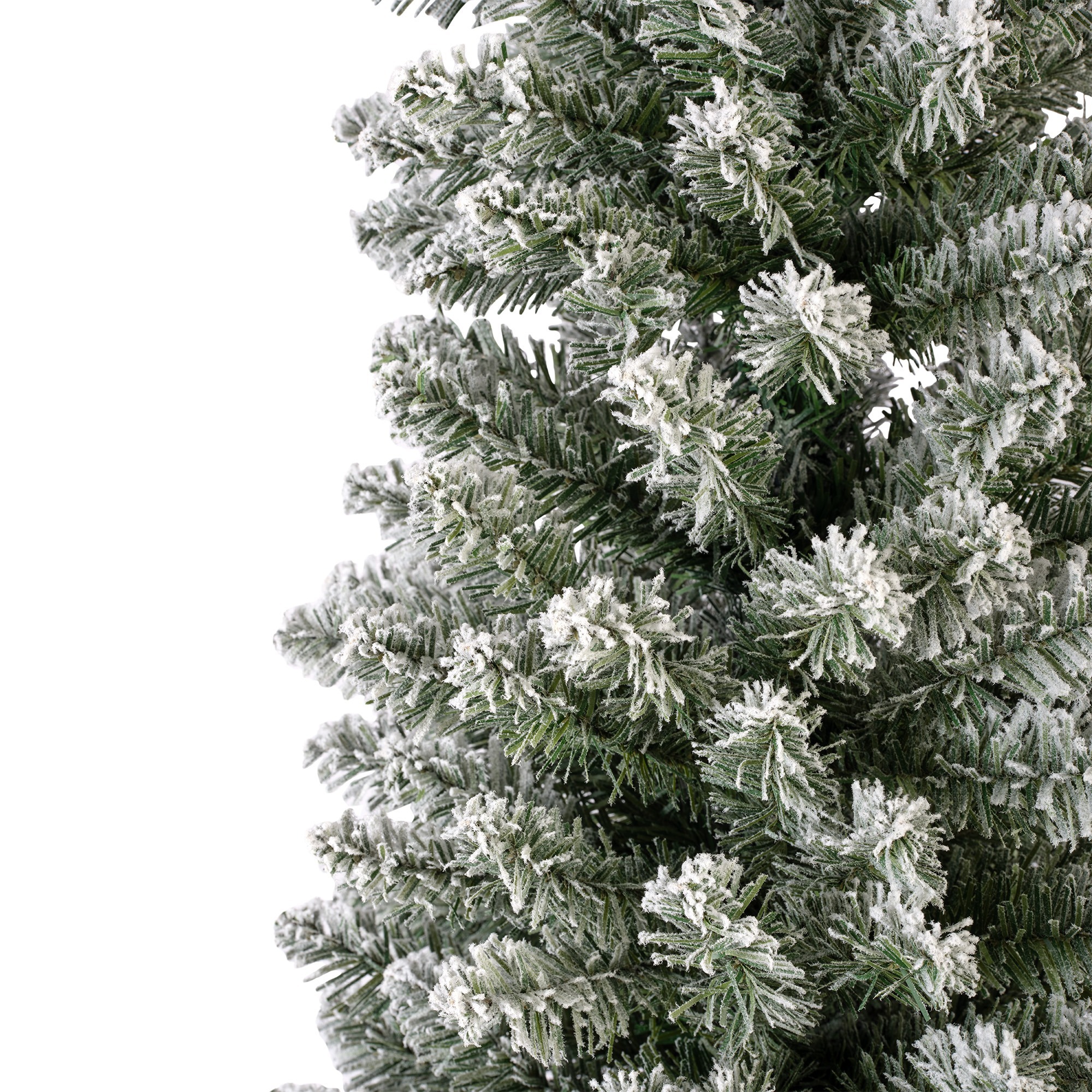 Delikatnie oprószone „śniegiem” gałązki tworzą efekt subtelnego połysku, który pięknie odbija światła lampek i sprawia, że drzewko wygląda niezwykle naturalnie. Wąska konstrukcja pozwala ustawić je wszędzie tam, gdzie klasyczna szeroka choinka się nie zmieści — bez rezygnowania z efektu WOW.