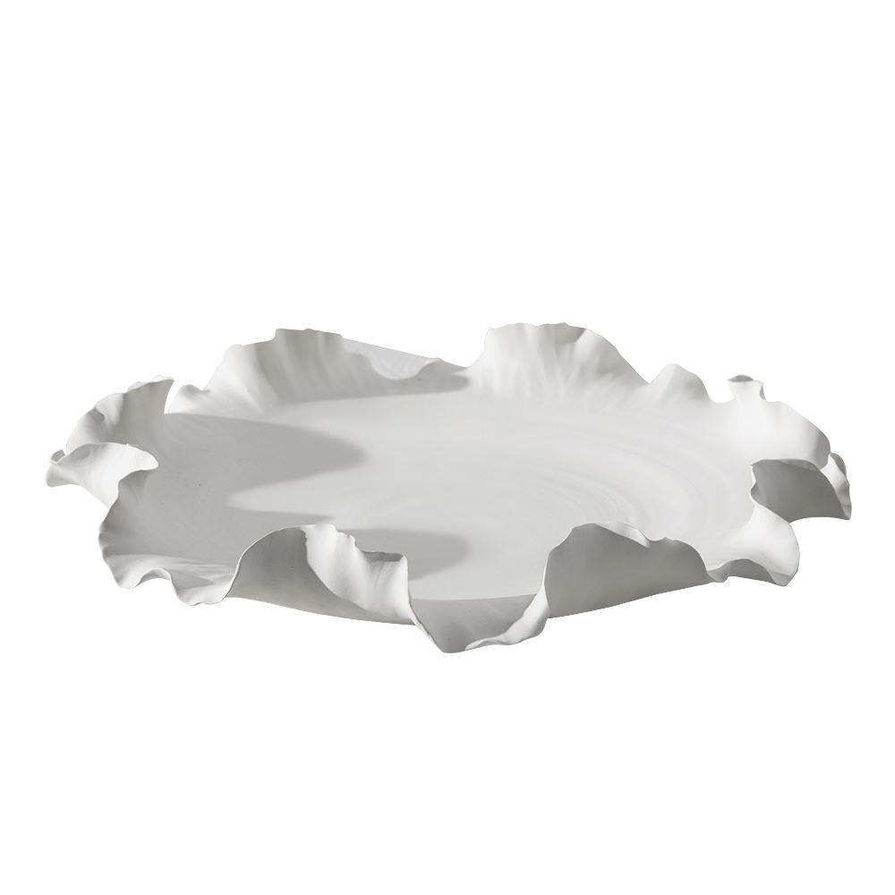 Misa dekoracyjna Volant o imponujących wymiarach 68 × 10,5 cm to arcydzieło ceramiki użytkowej, które łączy w sobie artystyczną formę z praktycznym zastosowaniem. Jej elegancki, subtelnie falujący kształt przywodzi na myśl płynność ruchu i miękkość naturalnych materiałów, co nadaje wnętrzu delikatnej dynamiki i harmonii. Duża, proporcjonalna forma sprawia, że misa sama w sobie staje się centralnym punktem stołu, konsoli czy blatu kuchennego, nie wymagając dodatkowych dekoracji, a jednocześnie doskonale komponuje się w zestawieniach aranżacyjnych z innymi elementami dekoracyjnymi. Biały kolor misy nadaje jej ponadczasowej elegancji i uniwersalnego charakteru, pozwalając na wkomponowanie jej w przestrzenie zarówno nowoczesne i minimalistyczne, jak i klasyczne, wyrafinowane wnętrza. Dzięki dużej powierzchni misa jest idealna do prezentowania kompozycji owoców, zarówno tych tradycyjnych, jak jabłka i pomarańcze, jak i egzotycznych, tropikalnych dekoracji stołu, a także do podawania przekąsek czy słodkich przysmaków podczas wyjątkowych przyjęć.