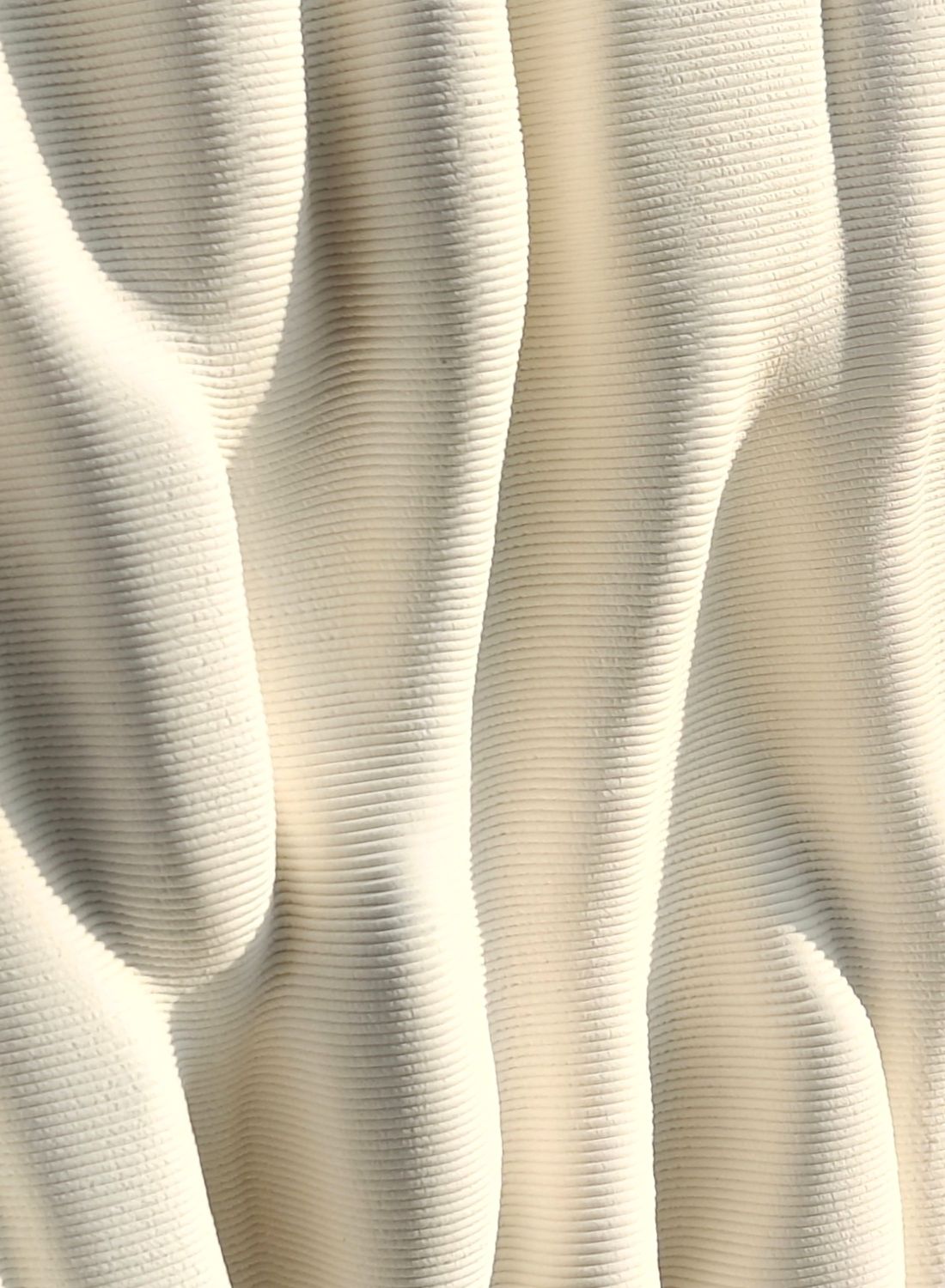 Wazon Cortex powstaje w zaawansowanej technologii druku 3D, która pozwala tworzyć misternie zaprojektowane struktury o organicznym charakterze. Obwodowy wzór falistych linii, przypominający piasek ukształtowany przez wiatr, podkreśla naturalny rytm formy i wprowadza subtelną dynamikę do wnętrza. Każdy detal jest efektem połączenia cyfrowej precyzji z wiedzą rzemieślniczą, co gwarantuje doskonałe odwzorowanie artystycznego zamysłu. Proces druku 3D pozwala zachować równowagę między perfekcyjną symetrią a naturalnym, organicznym charakterem ceramiki, a gładka powierzchnia subtelnie odbija światło, eksponując przestrzenność i rzeźbiarską lekkość wazonu Cortex.