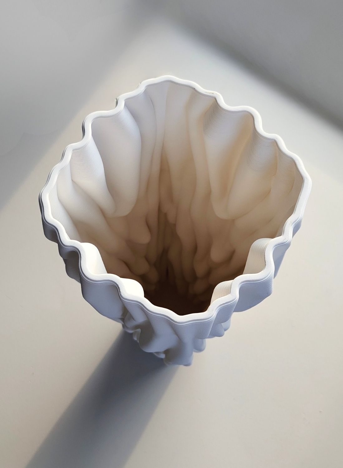 Proces drukowania 3D umożliwia odwzorowanie najdrobniejszych detali falistego, piaskowego wzoru, który w tradycyjnej ceramice byłby trudny do osiągnięcia. Efekt przestrzenności, subtelna gra światła i wyrafinowana faktura nadają wazonowi Cortex wyjątkowego wyrazu, podkreślając jego smukłą sylwetkę i artystyczną lekkość. Każdy egzemplarz łączy precyzję wykonania z designerskim pięknem, czyniąc wazon zarówno funkcjonalnym elementem do kwiatów, jak i ekskluzywną dekoracją wnętrza, a jednocześnie znakomitym pomysłem na prezent dla osób ceniących nowoczesną ceramikę i unikalne formy.