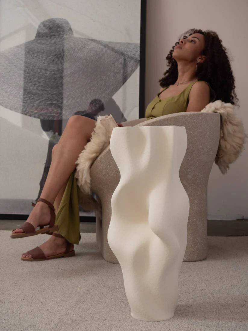 Wazon Flo w odcieniu Ivory Beige to wyjątkowa interpretacja harmonii między naturą a designem. Jego forma, inspirowana miejscem, gdzie rzeka spotyka się z morzem – ujściem rzeki Duero – oddaje subtelny rytm wody, jej płynność i nieustanny ruch. Delikatne, falujące linie przywodzą na myśl taniec fal zatrzymany w ceramicznej formie niczym w kadrze. Jasny, kremowo-beżowy kolor potęguje wrażenie lekkości i równowagi, dzięki czemu wazon w naturalny sposób wtapia się w każde wnętrze – od minimalistycznych przestrzeni po klasyczne salony. To nie tylko naczynie na kwiaty, lecz dekoracyjna rzeźba, która emanuje spokojem i przywołuje zmysłową bliskość natury.