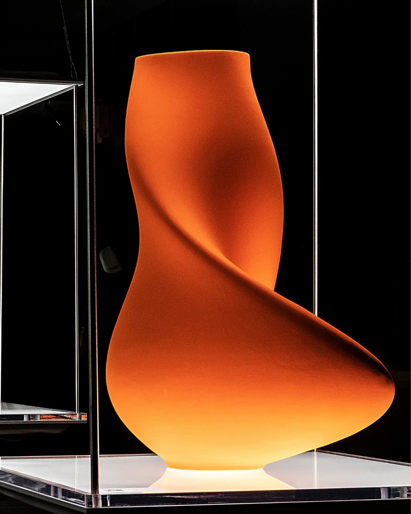 - Kolorystyka: flame orange – intensywny, głęboki pomarańczowy odcień o matowym wykończeniu, który dodaje formie ciepła i artystycznej wyrazistości.