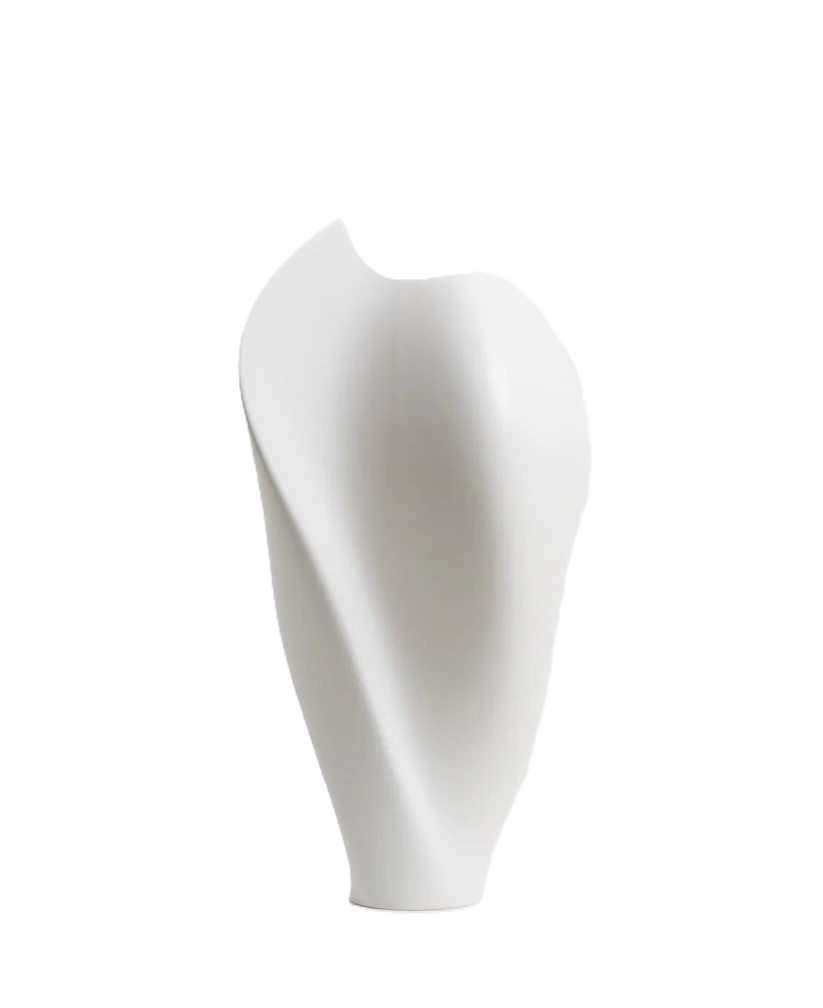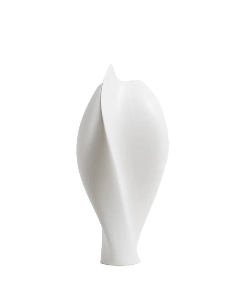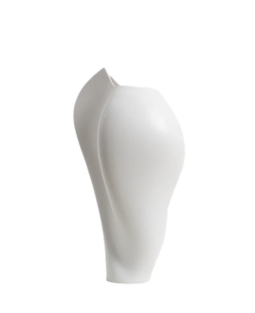 Każdy egzemplarz powstaje z formowanej ceramiki ręcznie wykańczanej, dzięki czemu zyskuje niepowtarzalny charakter i subtelne różnice w fakturze powierzchni. Gładka, perłowa biel podkreśla elegancję i głębię formy, a miękkie linie dodają całości harmonii i lekkości. Wazon o imponujących wymiarach 57 × 26,5 × 33 cm staje się wyrazistym punktem przestrzeni – idealnym do wyeksponowania pojedynczej gałęzi lub kompozycji kwiatowej. To wyjątkowy pomysł na prezent dla osób, które cenią sztukę użytkową, emocjonalny przekaz i ponadczasowy design.