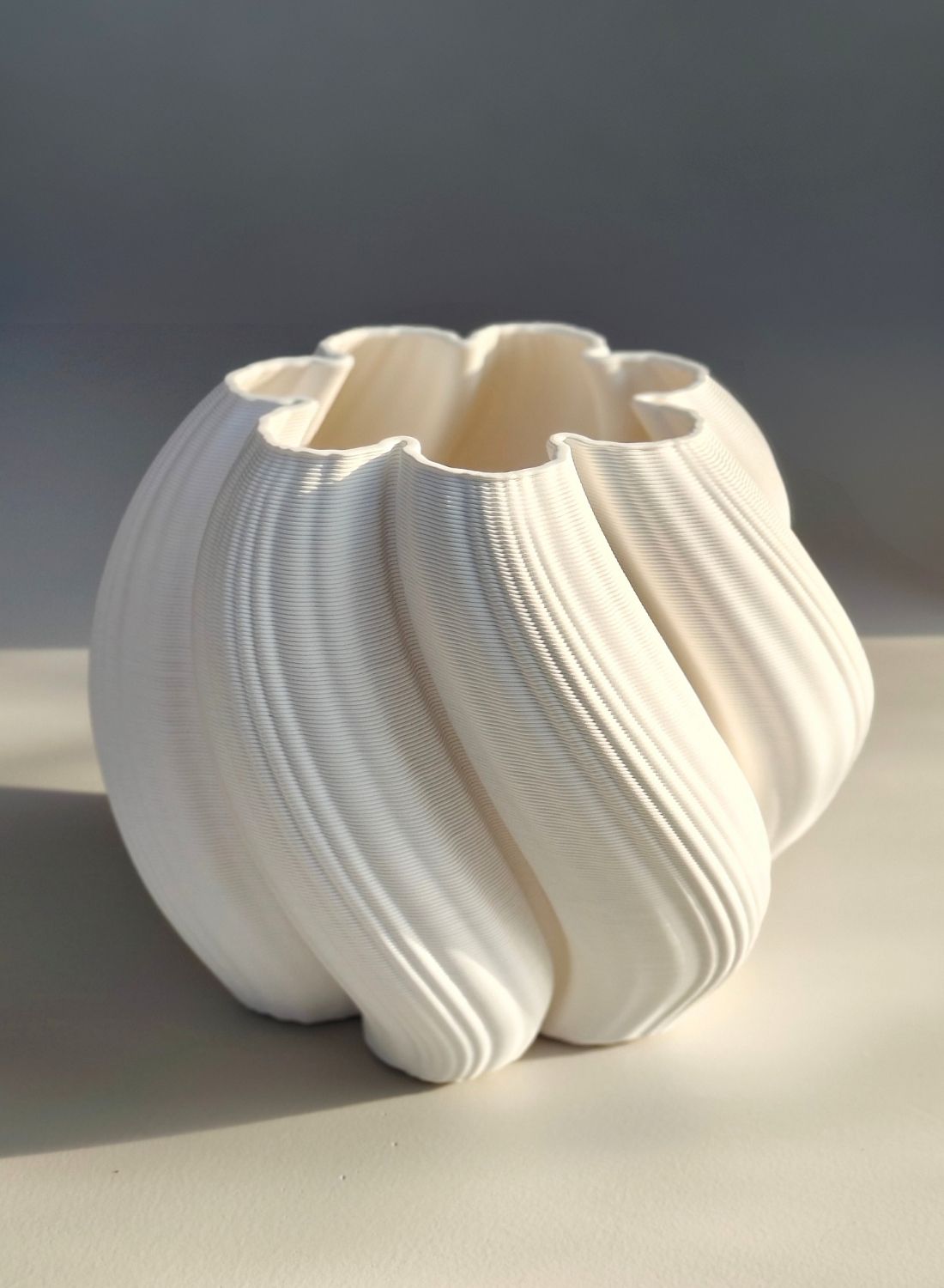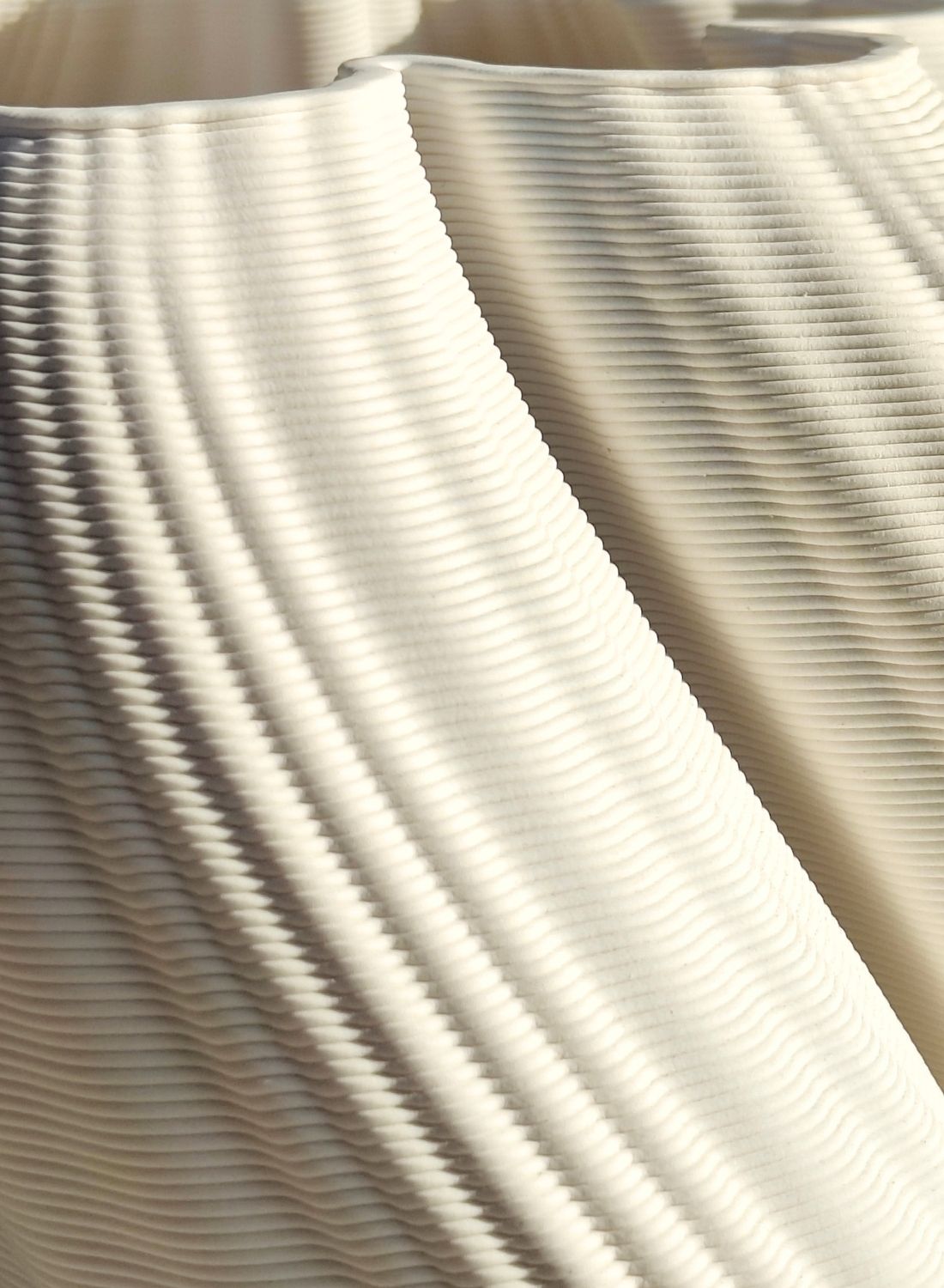 Proces technologii druku 3D umożliwia tworzenie fal, przetłoczeń i dynamicznych konturów, które w tradycyjnej ceramice byłyby trudne do osiągnięcia. Efekt przestrzenności i subtelna gra światła nadają wazonowi wyjątkowego wyrazu, podkreślając jego zaokrągloną, falistą sylwetkę oraz artystyczną lekkość. W rezultacie Retorta Pila łączy perfekcyjną precyzję wykonania z designerskim pięknem, czyniąc wazon zarówno funkcjonalnym elementem do kwiatów, jak i ekskluzywną dekoracją wnętrza. Doskonale sprawdzi się również jako elegancki prezent dla osób ceniących nowoczesną ceramikę i unikalny design.