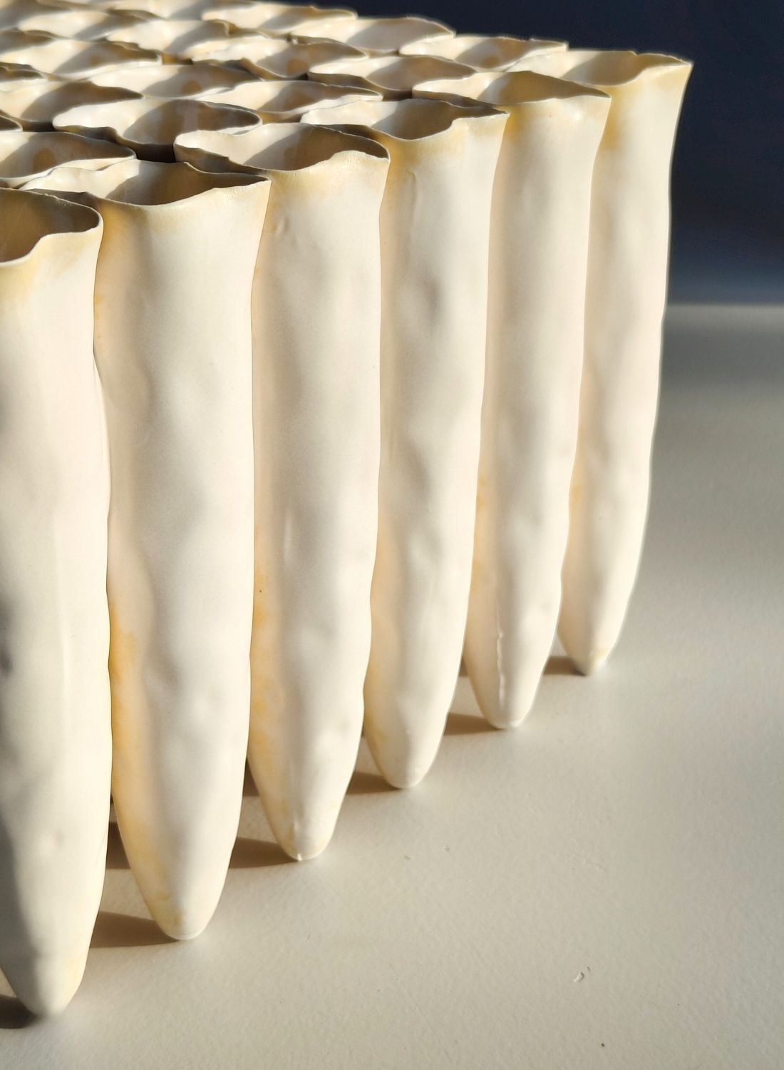 Wazon Stalactites wykonany jest z ceramiki i powstaje w procesie ręcznym, dzięki czemu każdy egzemplarz posiada unikalny charakter. Subtelne różnice w wykończeniu i strukturze są naturalnym efektem pracy rzemieślniczej i świadczą o autentyczności produktu. Ceramiczna powierzchnia podkreśla plastyczność formy, wydobywając detale inspirowane naturą. Konstrukcja wazonu umożliwia tworzenie różnorodnych kompozycji – od pojedynczych gałązek, przez minimalistyczne bukiety, po suszone dekoracje. Wazon sprawdzi się zarówno w salonie, jadalni czy sypialni, jak i w przestrzeniach komercyjnych, takich jak lobby hotelowe czy biura. Świetnie sprawdzi się również jako wyszukany pomysł na upominek dla osób ceniących artystyczne dekoracje.