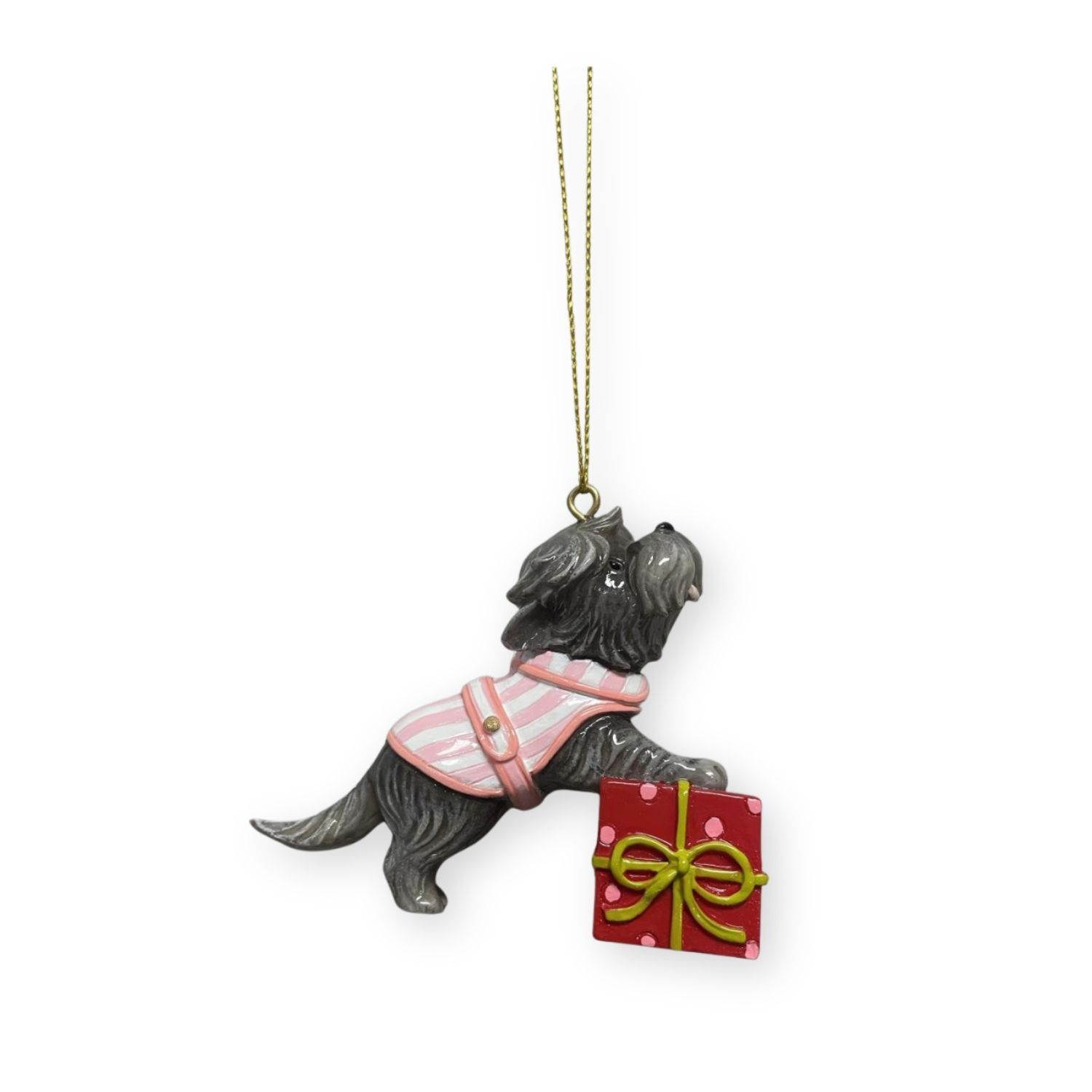 Zawieszka pies yorkshire terrier w ubraniu świątecznym 7x8.6cm