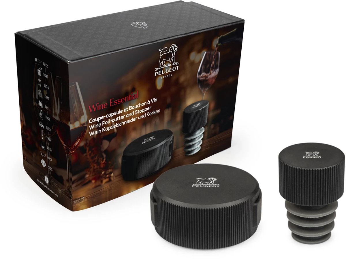 Zestaw do wina Wine Essential korek + obcinacz do folii czarny matowy